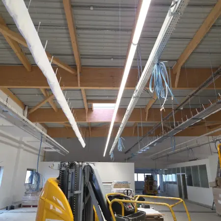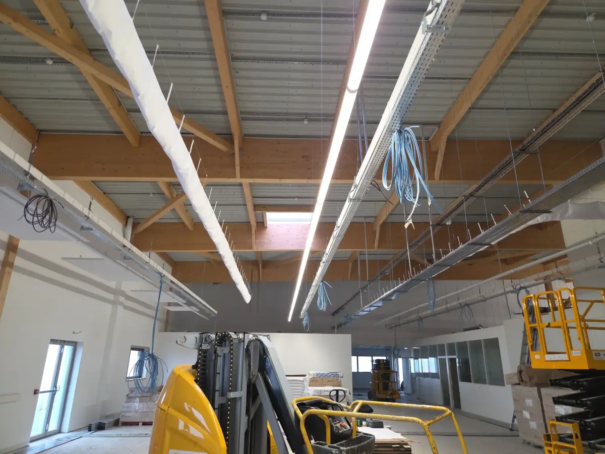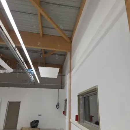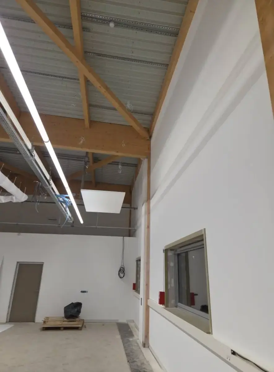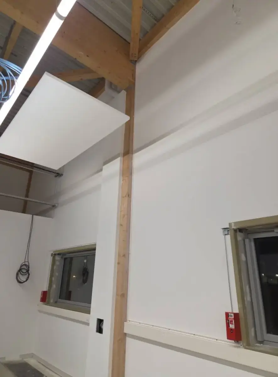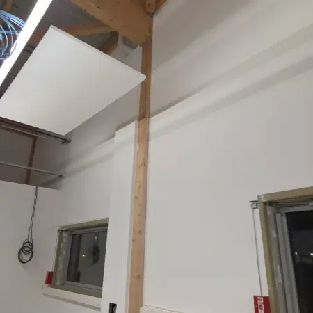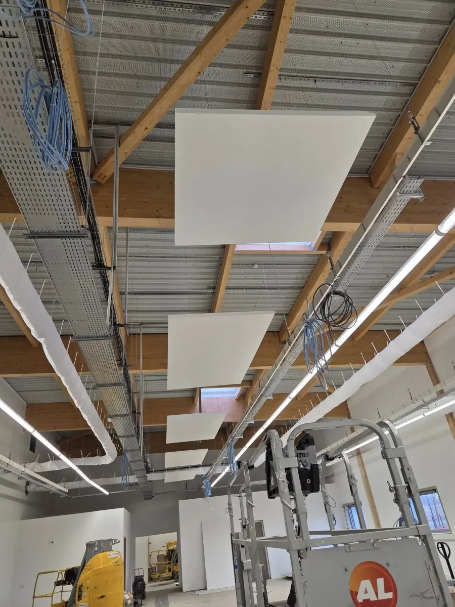 Dans le cadre d’un chantier professionnel à Saint-Laurent-Blangy, près d'Arras, J&F Agencement est intervenu pour améliorer le confort acoustique d’un espace de travail grâce à la mise en place d’éléments suspendus.